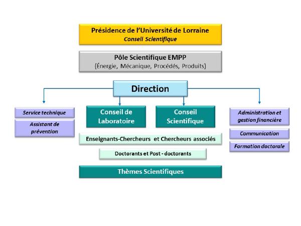 Notre laboratoire fait partie du pôle scientifique « Énergie, Mécanique, Procédés, Produits » (EMPP) de l’Université de Lorraine, qui comprend 6 laboratoires et s’organise autour de la Fédération Jacques Villermaux pour la Mécanique, l’Énergie, les Procédés (FR2863), en association forte avec le CNRS. Il a également le label l’Institut CARNOT Icéel.
